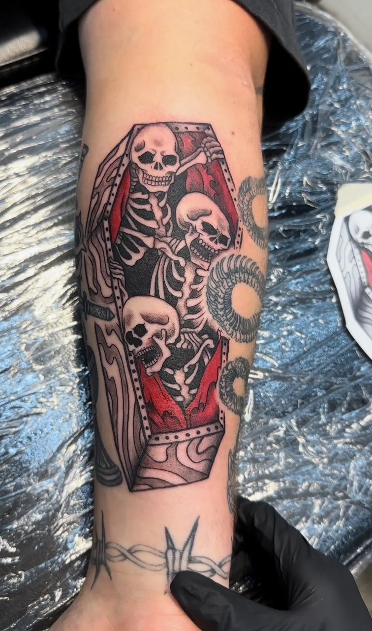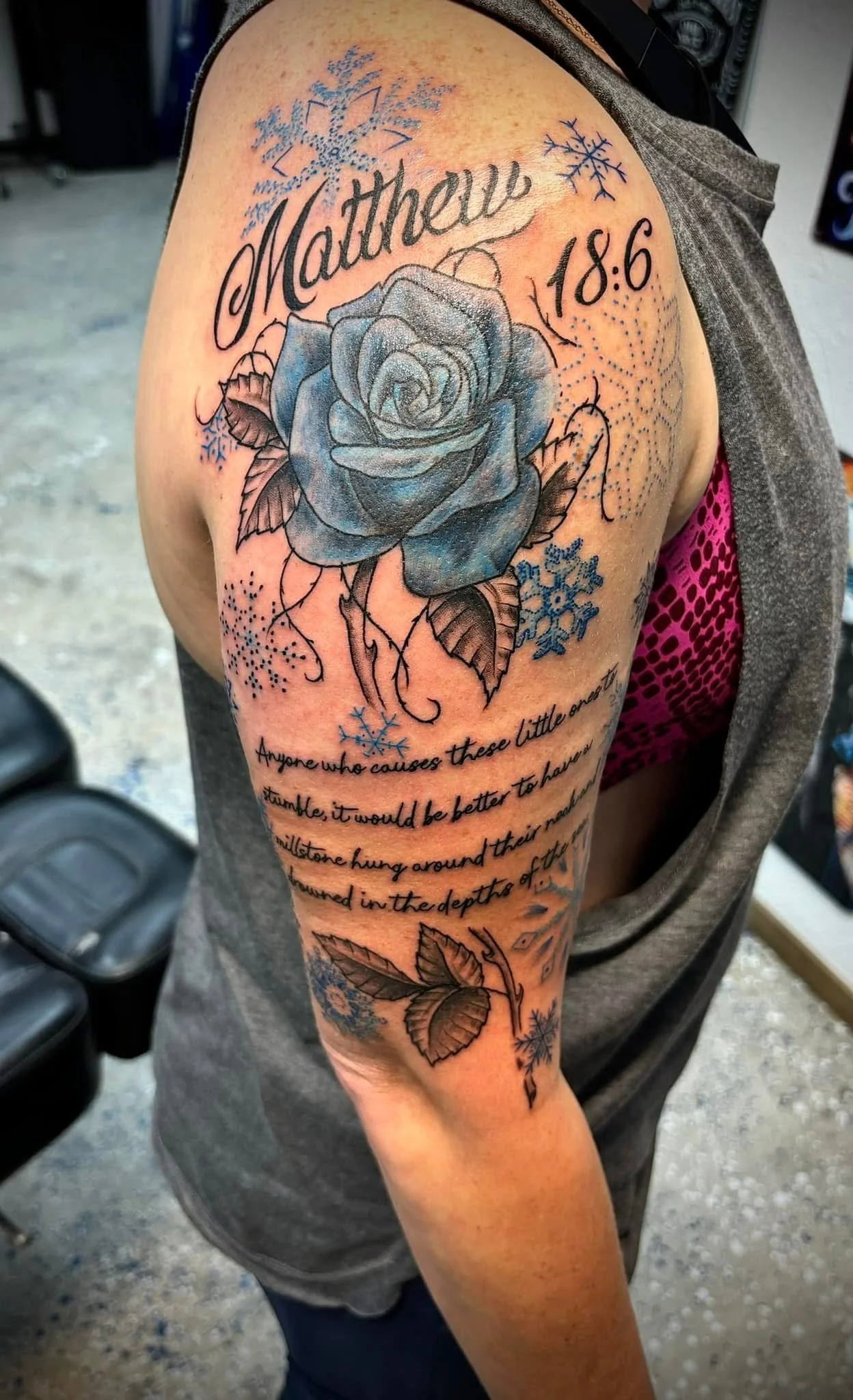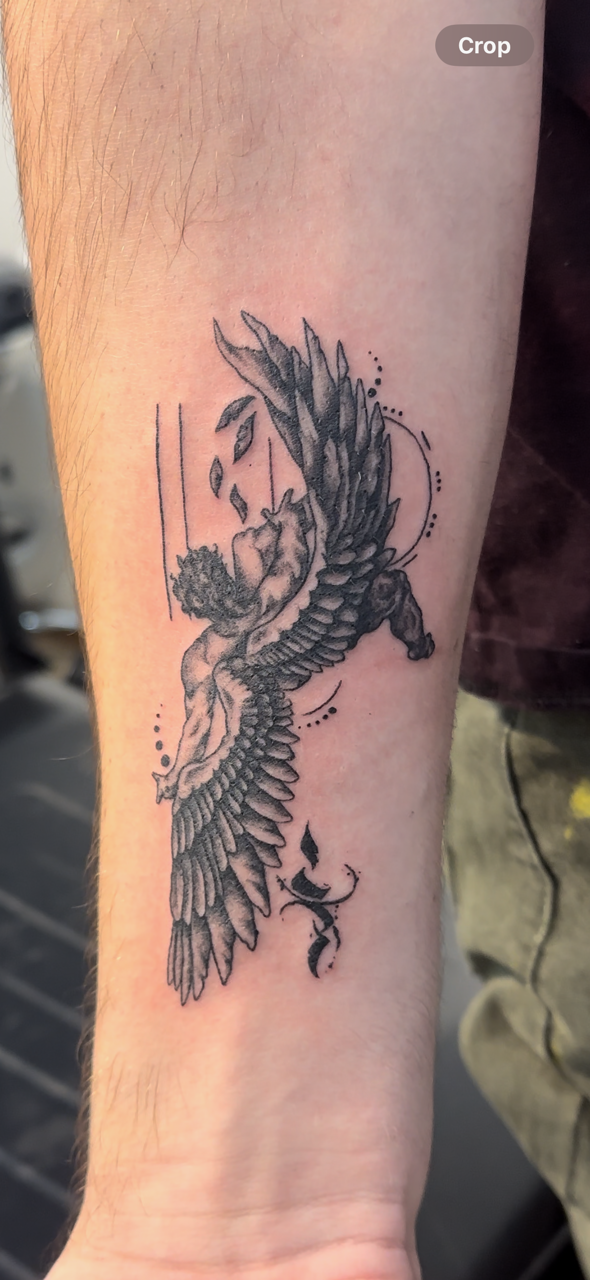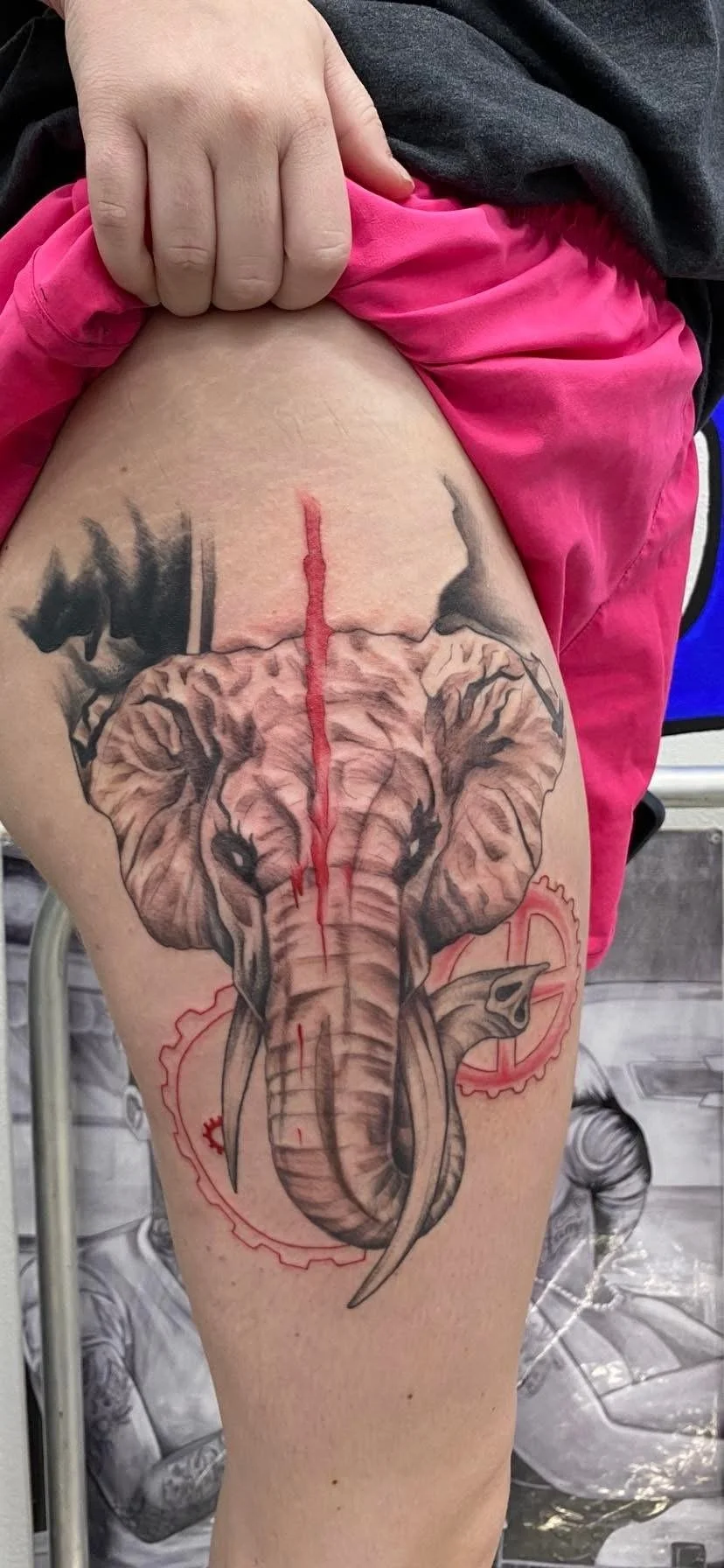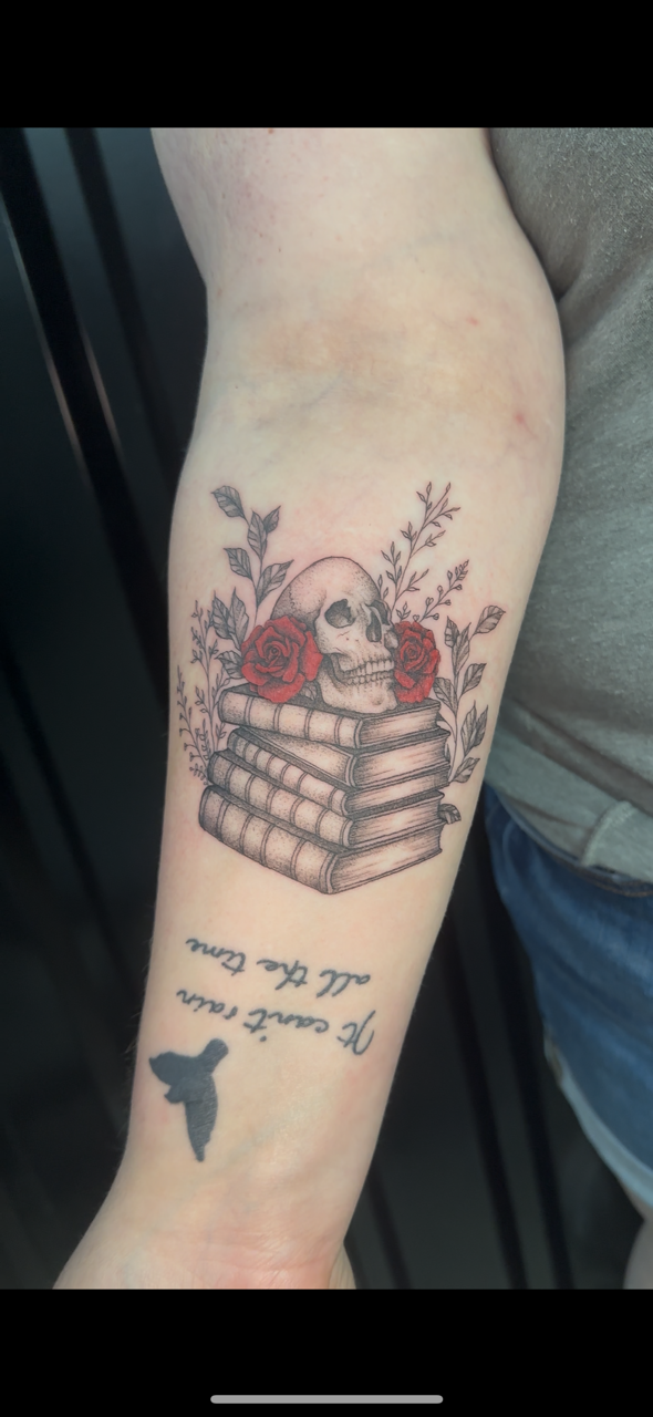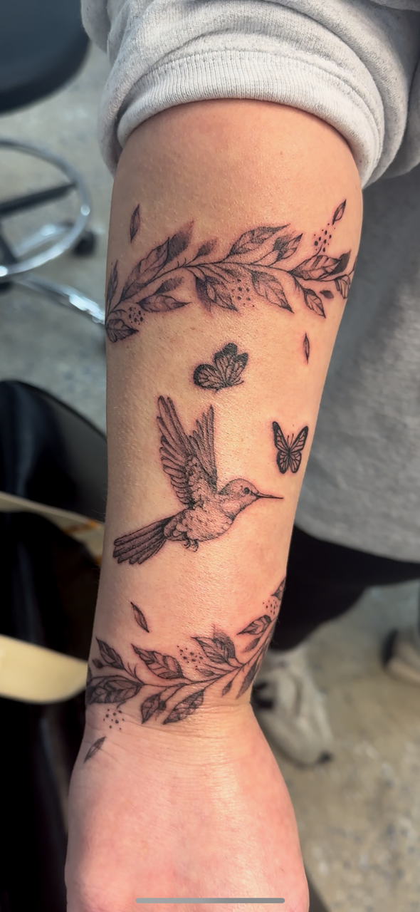 “Originally from Chickasha, Oklahoma, I’ve been creating art since I was seven, working with everything from pencil and paint to clay. I did my first tattoo at 11 and quickly realized this was more than just a craft—it was a way to tell powerful, personal stories. Inspired by the emotional depth of memorial tattoos, I began tattooing professionally at 19, driven by a desire to help people honor their loved ones and mark meaningful moments in their lives. My work is rooted in connection, care, and creativity, and I approach each piece as a collaboration—one that reflects the unique story, spirit, and vision of every client. Whether it’s a small tribute or a full custom piece, I’m here to create something that truly lasts.”