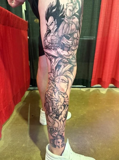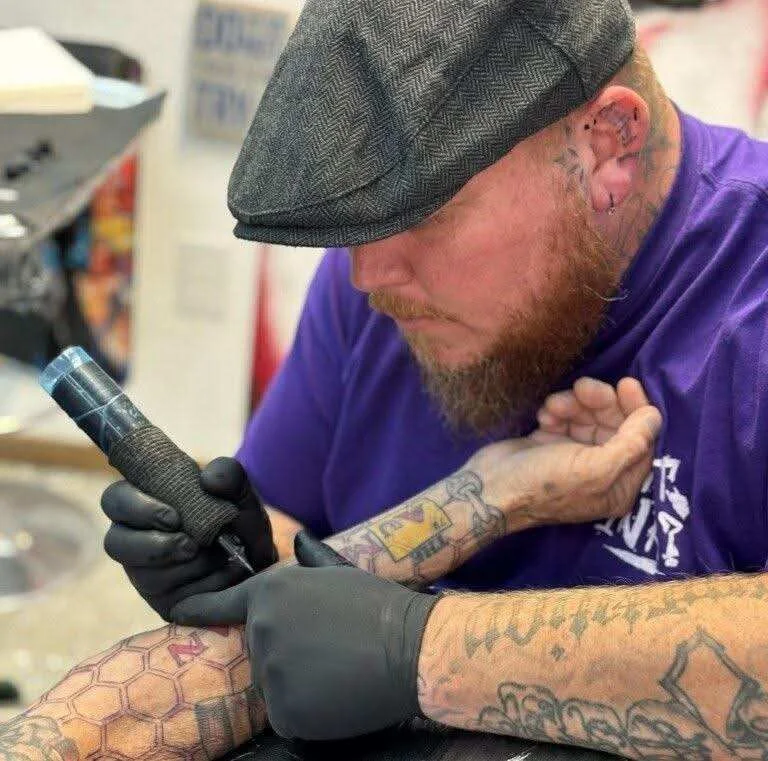 “Born and raised in Wichita Falls, TX, I got into tattooing in 2020 during the pandemic as a way to reconnect with art. I started with a machine I bought online, tattooing myself, friends, and family while steadily developing my skills and finding my style. In February 2022, I teamed up with Lou, and together with KD, we’ve built a creative, welcoming environment and a community of clients we genuinely value. Over time, I’ve worked in a range of styles, but I’m especially drawn to American traditional, neo-traditional, anime, blackwork, pop culture–inspired, and illustrative designs. I now live in Denton with my loving wife, Jordyn, who’s been by my side through every step of this journey. I’m grateful whenever someone trusts me with their skin, and I take pride in bringing their ideas to life in a memorable way.”