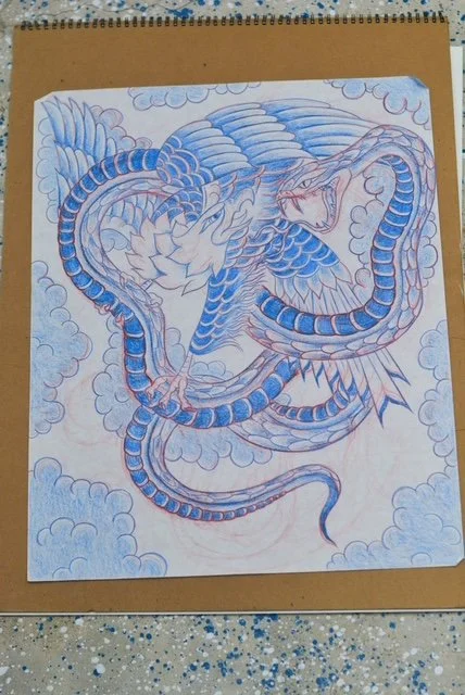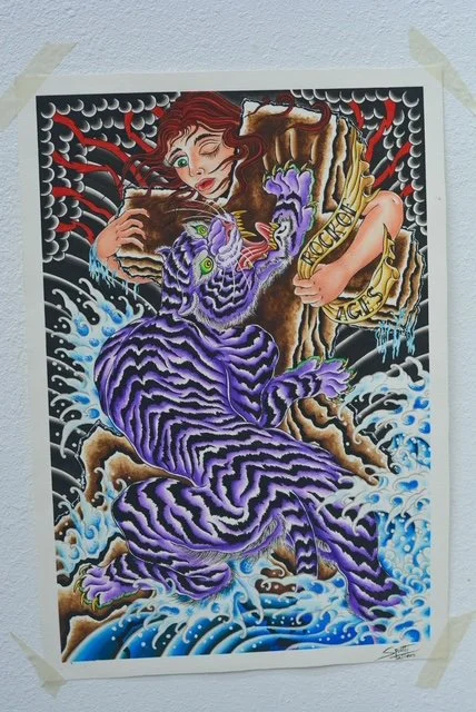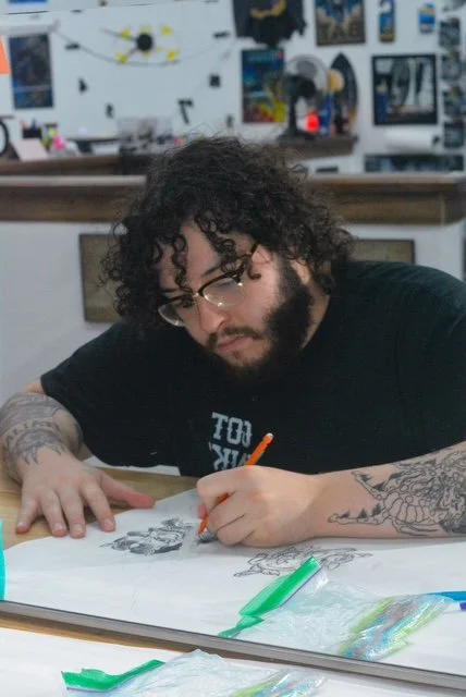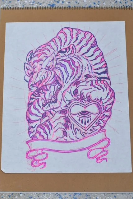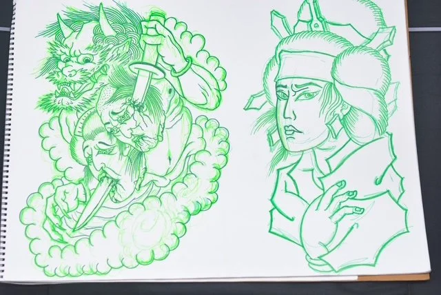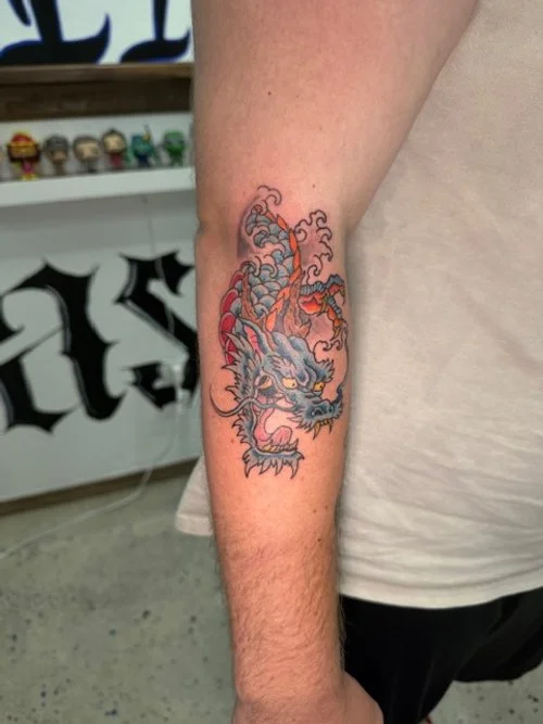 “Born in North Carolina and raised in North Texas, I’ve always had a passion for drawing and art—ever since I can remember, a pencil and paper were always in my hands. In high school, I discovered some of the greats like Ed Hardy, Sailor Jerry, and Bert Grimm, and was inspired by the endless possibilities of American traditional tattooing. I was drawn to how something so simple could become elaborate tattoos, paintings, and more. That curiosity led me to Japanese traditional tattooing, where I was captivated by the deep meanings behind each element and the way designs could be both intentional and intricate. Over the years, I knew becoming a tattoo artist was my calling—to bring the styles I love to life with my own hands. As the apprentice here at Tat2Lous, my goal is to constantly grow, learn from those around me, and become a versatile artist capable of fulfilling any client’s vision.”