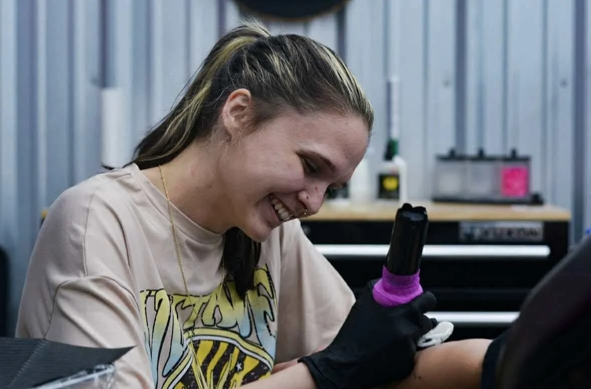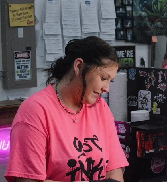 “I’m a piercer from Ardmore, Oklahoma, and my journey started right here at Tat2Lou’s — first as a client, where each visit felt more like coming home. Over time, the shop became more than just a place I went to; it became a family I deeply connected with. Eventually, I asked to grow with them and turn that connection into something more. Now, I’m proud to be on the other side of the chair, creating a space where people feel safe, seen, and free to express themselves in ways they might not be able to elsewhere. Piercing has opened my heart to the stories and souls of those who sit with me, and I’m grateful for every bond it brings.